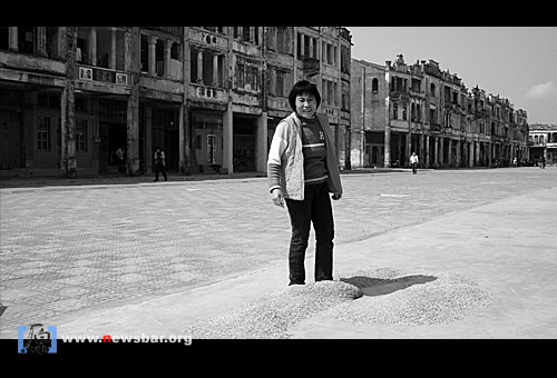 晒谷的妇人。台山系著名侨乡,但凡年青人不论男女均喜欢移民海外,留在乡下的大抵是老年人。