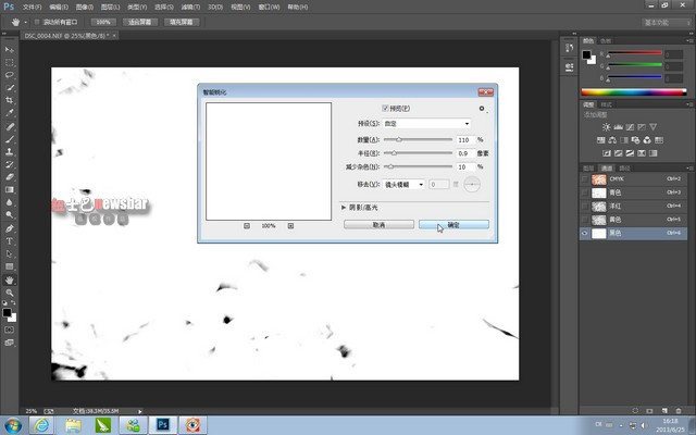 很多人会老练地点入滤镜→锐化,然后锐化→进一步锐化→USM锐化通通用上,锐是锐了但噪点大增感觉很不自然。很久很久以前我做过印刷设计,因此借鉴了印刷上的办法,单独处理黑白底图稳固基础,同时避免过度锐化的负效应。